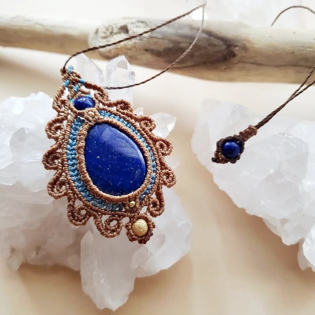 美しいブルーの中に金の砂子のようなパイライトの粒がキラキラとまぶされていて
